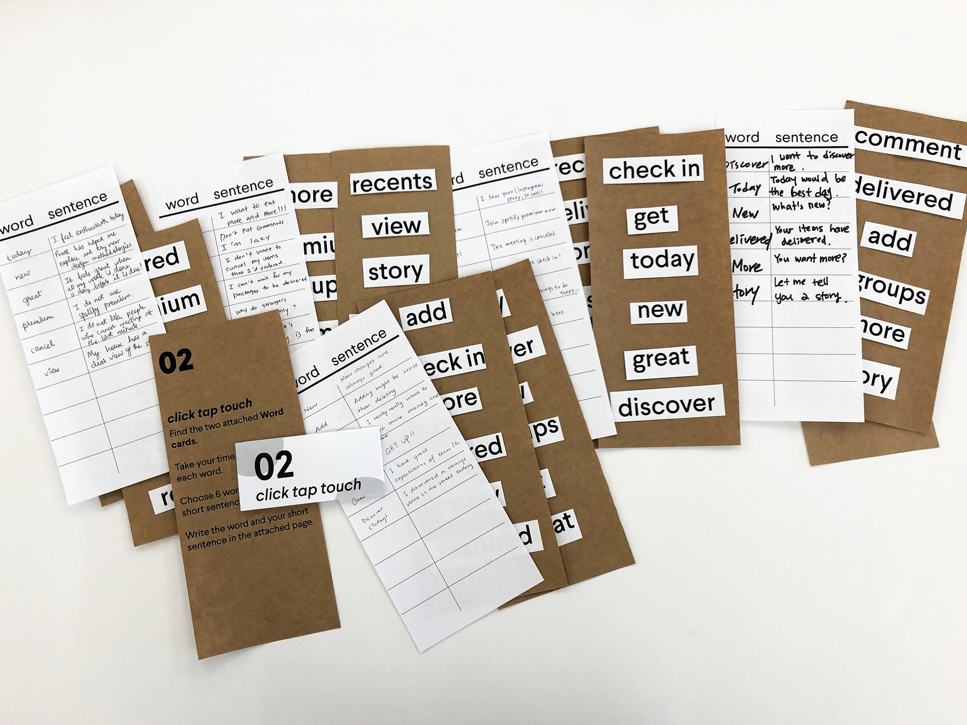 The participants were first asked to pick a digital interface and write down a set of interactions in linear order. They had to note every word they clicked on to go to a new page or a result or any other interaction. Based on each word they clicked - they had to consider the literal meaning of the word/what action it prompted them to do or a feeling they had while interacting.